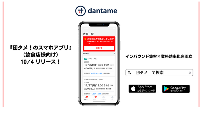 旅行会社専用の飲食店検索・予約サイト「団タメ!」インバウンド集客×業務効率化を両立、<飲食店用>の予約管理アプリリリースのお知らせ