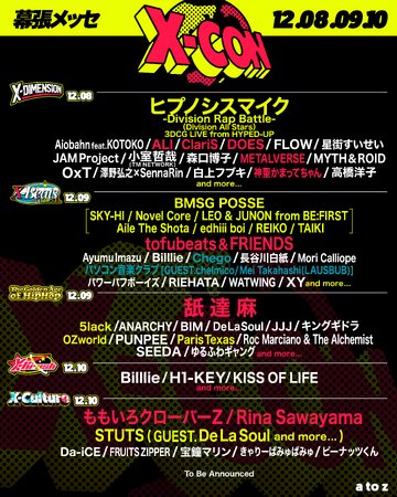 X-CON(エックスコン)は新時代のクロスカルチャー音楽フェス。ジャンルや国境を超えて、アニメ、ゲーム、ロック、ヒップホップ、アイドル、K-POP、VTuberといったさまざまなシーンから最高峰のアーティストが一堂に集結。最先端のカルチャーがクロスオーバーする唯一無二イベント。
