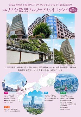 『エリア分散型アルファアセットファンド第三弾』は、穴吹興産が全国で保有する物件の中から首都圏・関西・九州・中四国に点在する優良物件20物件が対象。全国に分散した物件を厳選することで局地的な災害リスクなども抑えることができます。