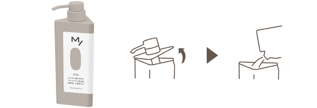 ●詰め替えパウチがそのまま入る「エムスラッシュ モノボトル スクエア」