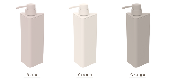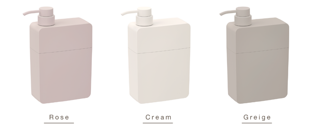 最近はドラッグストアに行ってシャンプーを買おうと思ってもボトルタイプが無く、パウチレフィルしか売っていないというケースをよく見かける。この商品もそういった使用済みボトルを排出させないためのエコ商品だ。ユーザーの詰め替えパターンによって、2つの選択肢がある点が優れている。角型は中央から二分されてパウチ毎に収納できるため、容器を汚さず衛生的で移し替えの手間もほとんどかからない。ただ、全てがパウチとは限らず、大きな業務用ボトルからの移し替えのパターンもあるため、三角型の容器も考えられている。いずれもマットなパステル調のカラーリング3色なので、部品を交換することでの複数のアソートが可能となっている。これによって数種類のシャンプーやコンディショナー、ボディソープを置くことができ、組み合わせた場合の美しさが計算されているのが素晴らしい。