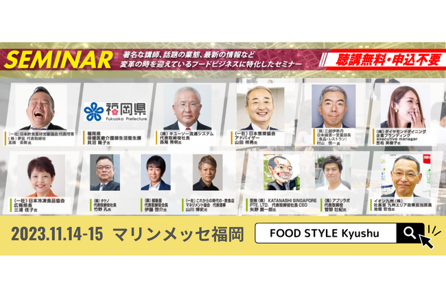 FOOD STYLE Kyushu 実行委員会(所在:東京都港区、運営:株式会社イノベント)は、展示会場内で開催するセミナープログラム全11のセッションの詳細を、公式ホームページにて公開いたしました。