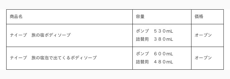 「ナイーブ」ボディソープと薬用入浴剤「旅の宿」がコラボレーションした数量限定商品