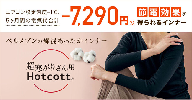 「Hotcott(ホットコット)(R)」を着て電気代合計「7,290円」節約!この冬5か月間、エアコン設定温度を1℃下げて上手に節電!そのヒミツは?「超寒がりさん」シリーズ