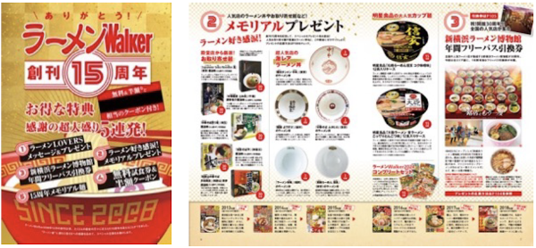 創刊15周年を記念して、「ラーメンWalker」ゆかりのラーメンLOVERSからのお祝いメッセージを掲載。ラーメン愛がにじみ出るメッセージはファンならずとも必見です。また、LOVERSがサインした貴重なラーメン丼や、殿堂店から編集部が厳選したお取り寄せ麺、超人気店の激レアラーメン丼など、プレゼントが当たるスペシャル企画も満載です。