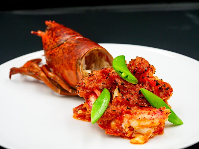 今月のロブスター料理は、丸ごと1尾を殻付きでローストし、自家製のサンバルソースで仕上げました。