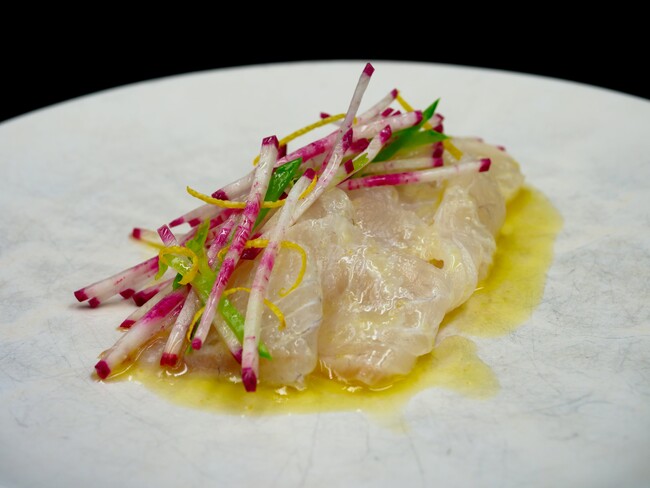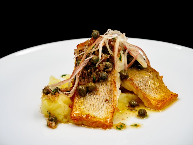 ケーパーの酸味とバターのコク、芳醇な香り、茗荷の爽やかな香りが、スズキのあっさりとした旨みに絶妙にマッチし、より風味豊かな味わいに仕上がりました。