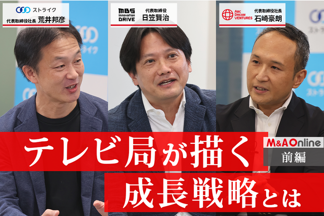 関西を代表する準キー局「毎日放送」(MBS)、「朝日放送」(ABC)から、M&A戦略を担うお二人に業界の展望と成長戦略を大いに語っていただきました。ゲストは、MBSイノベーションドライブの日笠賢治代表取締役、ABCドリームベンチャーズの石崎豪朗代表取締役社長。ストライク代表取締役社長の荒井邦彦がホストを務め、ここでしか見られない、テレビ局の本音に迫った動画となっております。