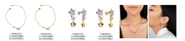 夜空にきらめく星をモチーフに、輝くヨーロッパ産のクリスタルをセッティングしたジュエリー。連なる星や、星の瞬きをイメージしたデザインはエターナルな魅力を備えています。