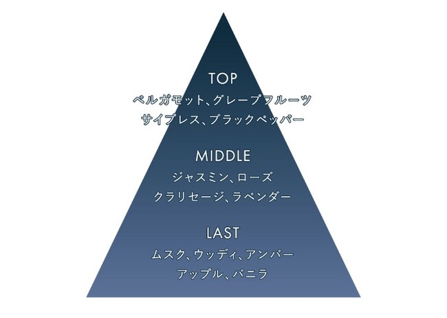 フレッシュなフルーツとムスクの香りが魅力的な印象を与える