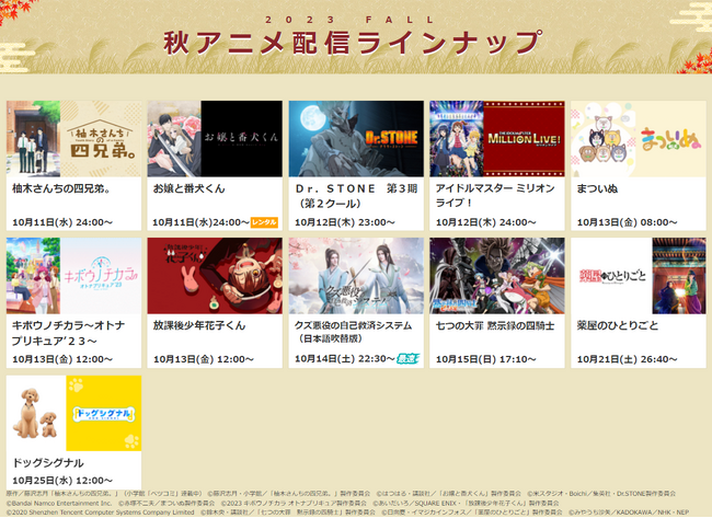 ※詳細は次項目「■2023秋アニメ・配信決定一覧」 及び ラインナップページをご確認ください