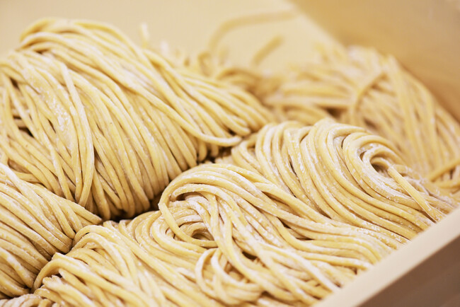 麺は中細で噛み切る際にプッツンとしたコシ、クセは少ないながらもスープの風味にも打ち消されない小麦の旨味を持ち、どのようなスープにも合うため選びました。その他3商品はこの麺だからこそ生まれた商品です。