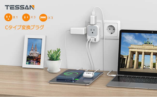 4個のACアダプター差込口と3個のUSBポートを搭載し、同時7台の機種が充電可能、コンセント不足が解決できます。コンセントは各方向に分配して、大きなアダプター同士が同時に挿入してもお互いに干渉せずに使用できます。