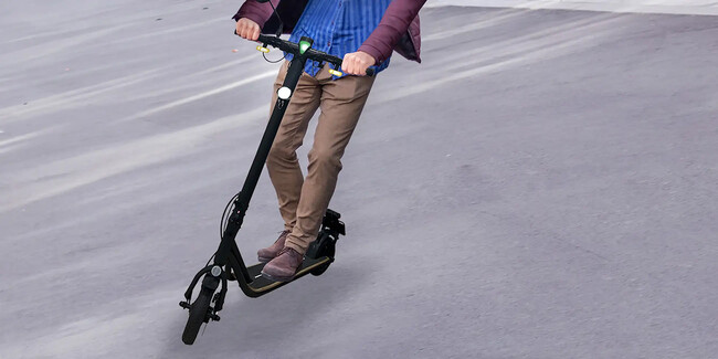 識別点滅灯(最高速度表示灯)、ウィンカー(前後に装備)、ヘッドライト、バックミラー、警音器、テールランプ、およびナンバー灯が装備されています。特に、明るく大きな前照灯やウィンカーは、最大50mの距離からでも見やすく、価格も7万円代という点で、歩道および公道での走行が可能な特定小型区分の電動キックボードとしては非常に手頃です。