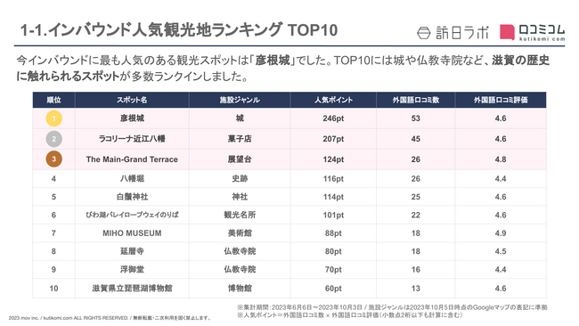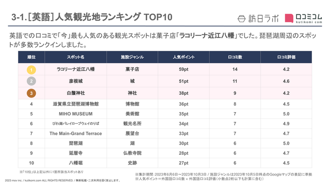【独自調査】インバウンド人気観光地ランキング滋賀編:コロナ後 最新の訪日客の支持を集めたスポットTOP10を発表 #インバウンドMEO