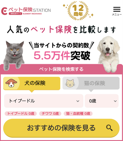 《株式会社エレメント》(本社:神奈川県川崎市、代表取締役:近藤勉)では、このたびペット保険比較サイト「ペット保険STATION( https://www.pets-station.info/ )」からの契約件数が5.5万件を突破いたしましたのでお知らせいたします。