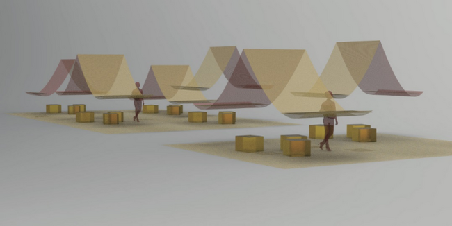 コンベンションホールでは、メインテーマである飛騨デザイン憲章第2条「人がつくる~人がつくり、人をつくり、人とある~」をコンセプトに建築家の「tamari architects」と「飛騨の森でクマは踊る」とのコラボレーションによるテーマブースを設けます。ここでは、地域や木工連合会が持つ「自治性」や「互いに助け合う」の精神に着目し、白川郷の「ゆい(結)」をイメージしながら、テーマである「人がつくる」を表現します。