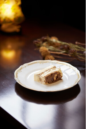 コーヒー風味のしっとりケーキで、マスカルポーネチーズクリームをサンドし、チョコレートでコーティングしました。