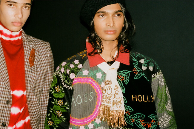 そこで目にした、1920年代のビーズドレスや1940年代のベルベットのガウンなどがウィメンズのコレクションに、ラインストーンのラペルが付いたタキシード、スパンコールのシャンパンボトルが施されたベルベットのスーツ、クラシックなオーダーメイドのオーバーコートなどがメンズのコレクションのインスピレーションとなっています。