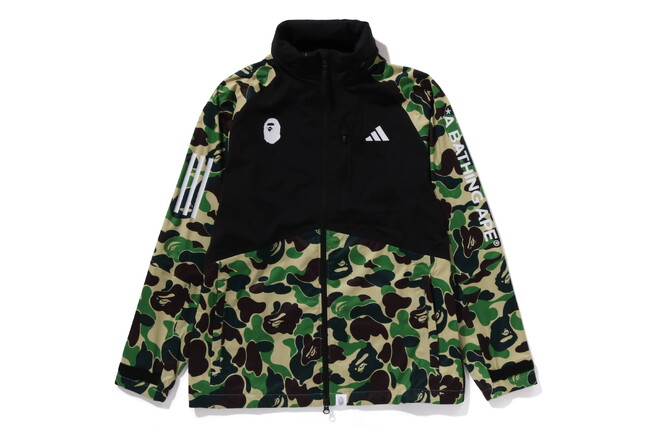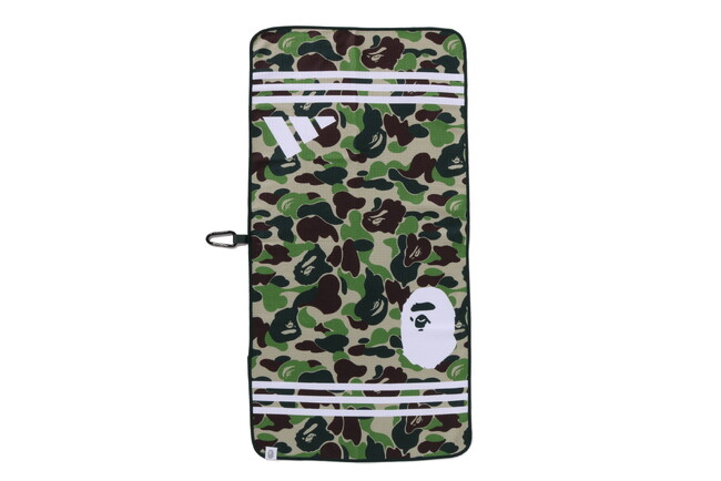 また、BAPE(R)のシグネチャーパターンのABC CAMOをあしらったウィンドブレーカージャケット、ポロシャツ、パンツ、グローブ、キャップ、タオルを取り揃えています。