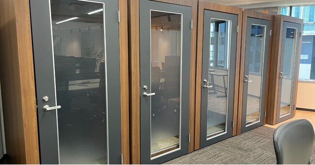 今回の増床では、webミーティング用の個別ブースが14個追加されました。