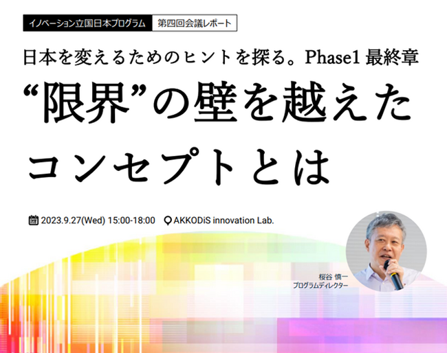 世界30ヵ国でデジタルとエンジニアリングを融合させたソリューションを提供するグローバルリーダーであるAKKODiSの日本法人で、企業および組織へエンドツーエンドのコンサルティングサービスを提供するAKKODiSコンサルティング株式会社(本社:東京都港区、代表取締役社長:川崎 健一郎、「以下、AKKODiS」)は、9月27日に「イノベーション立国日本プログラム」の第4回目の会議を開催しました。