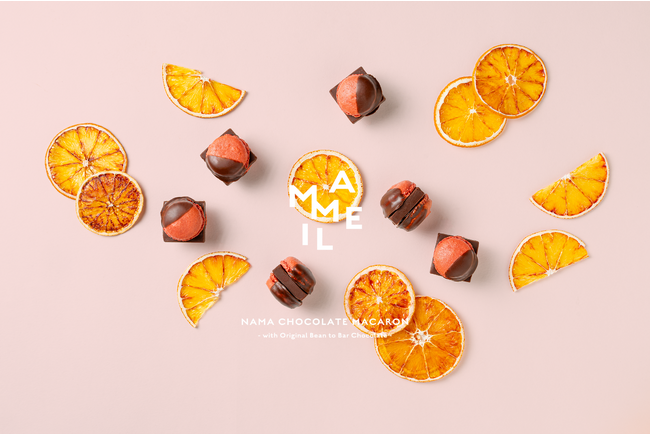 1粒にのべ1週間かけて作り上げる[MAMEIL NAMA CHOCOLATE MACARON]より、 2023年11月1日から新フレーバー【ブラッドオレンジ】が登場!