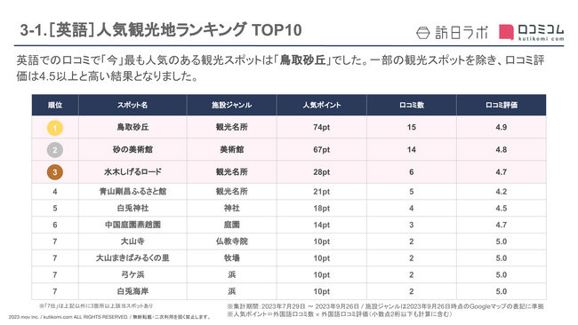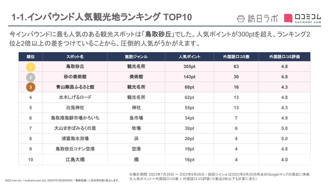 【独自調査】インバウンド人気観光地ランキング鳥取編:コロナ後 最新の訪日客の支持を集めたスポットTOP10を発表 #インバウンドMEO