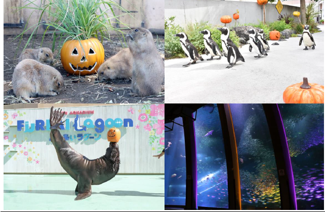 水族館「ふれあいラグーン」では、コツメカワウソ・オタリア(アシカの仲間)などが生態を活かしてさまざまなパフォーマンスを披露する「アニマルパフォーマンス」がハロウィン仕様となる他、ハロウィンの装飾で彩られた道をぺたぺたパレードするペンギンなど、可愛らしい生きものたちの姿を間近でご堪能いただけます。