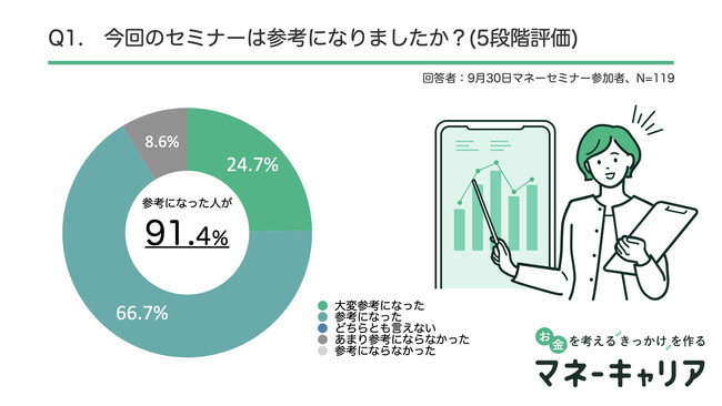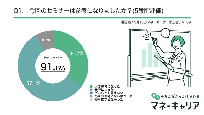 ・マネーセミナーのみだと思っていたので、子育てについてのサイグラム等の知識も頂けて満足度の高いセミナーでした。