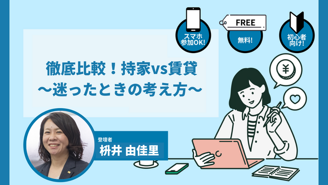 当日は保険の新規加入・見直し、住宅購入・住宅ローン、家計・固定費の見直しなどを専門分野とし、住宅ローンのプロである講師の枡井 由佳里様を迎えて「徹底比較!持家vs賃貸」に関するオンラインセミナーを実施いたしました。