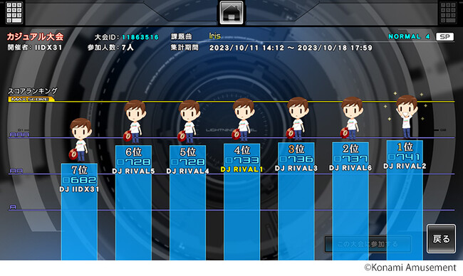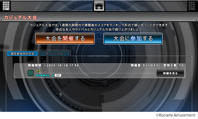 ゲーム画面上で課題曲やルールを選択し「大会を開催する」を押すだけで、どなたでも簡単に大会を開催することができるようになりました。