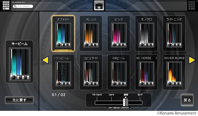 さらに新たな機能として、判定ラインを上下に移動させることができる「LIFTカスタマイズ」の追加や「キービーム」の長さ、「ノーツ」の太さなども自分好みに調整できるようになりました。