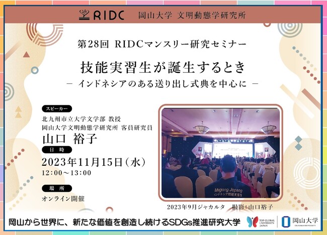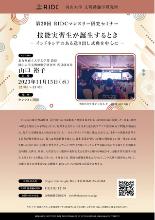 【岡山大学】文明動態学研究所「技能実習生が誕生するとき-インドネシアのある送り出し式典を中心に-」〔11/15,水 オンライン〕