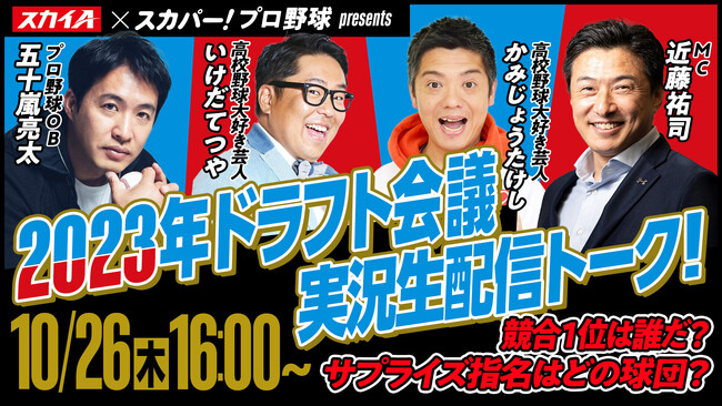 スカパー!熱狂フェス#テレビだけだと思うなよ 2023年ドラフト会議 実況生配信トーク!10月26日(木)スカパー! バーチャルアリーナ等にて無料生配信