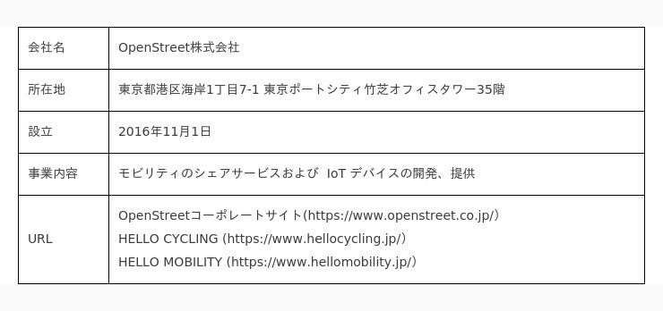 今回のOpenStreetとの提携により、シェアサイクルサービスのエリア拡大および高密度化の促進、さらには超小型EVの普及・拡大を促進することでモビリティシェアリングの多様化を目指していきます。