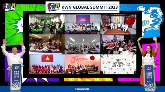 2023年のグローバルサミットは「KWNDAY」として各国で企画した交流会を実施し、その中の100分間を東京にあるスタジオとインターネット中継で世界を繋ぎ「異なった文化を知り交流を深める場」、「グローバルの社会課題を深める場」として開催し、各国代表の作品の中から優れた内容のものを子どもたち自身の投票で選ぶ、「キッズアワード」の選定が行われ2校が決定しました。