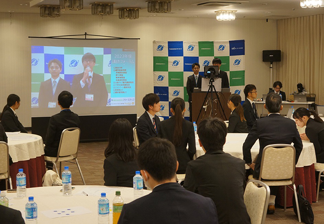 「日頃の担当に従事している非常勤講師一人ひとりがただのアルバイトとして勤務するのではなく、それぞれの将来に向けて成長につながる場として、教室があるべき。そして講師フォーラムではそうした日ごろの活動を発表したり、評価されたり、見返したりする機会として役立ててほしい」と語るのは永井代表取締役社長。教育という職業を通して多くの大学生講師の成長とその後の社会貢献も講師フォーラムの目的として重視している。
