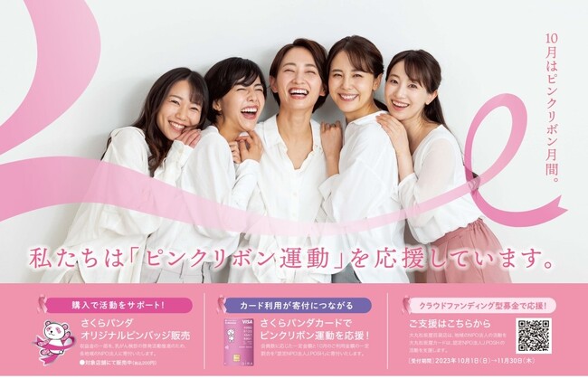 会員数に応じた一定金額、さらに、ピンクリボン月間(10月)の「さくらパンダカード」でのご利用金額の一定割合を「認定NPO法人J.POSH」に寄付いたします。