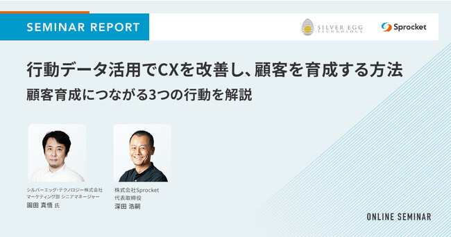 CX改善プラットフォームを提供する株式会社Sprocket(本社:東京都品川区、代表取締役:深田 浩嗣)は、シルバーエッグ・テクノロジー株式会社(本社:大阪府吹田市、代表取締役社長&CEO:トーマス・フォーリー)と共催で、オンラインセミナー「行動データ × パーソナライズ で実現するCX改善 ~EC月商2千万を超えるための、次の1手~」を2023年10月6日(金)に開催しました。セミナーの一部を抜粋したレポートをお届けします。