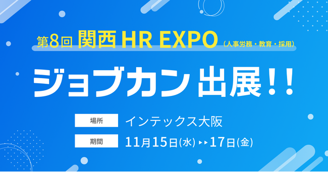 株式会社社DONUTS(東京都渋谷区、代表取締役:西村啓成)が提供するバックオフィス支援クラウドERPシステム「ジョブカン」は、2023年11月15日(水)~17日(金)にインテックス大阪(大阪府大阪市)にて開催されるバックオフィス向けの製品・サービスの総合展「【関西】総務・人事・経理Week」内で開催される「第8回【関西】HR EXPO(人事労務・教育・採用)」に出展します。