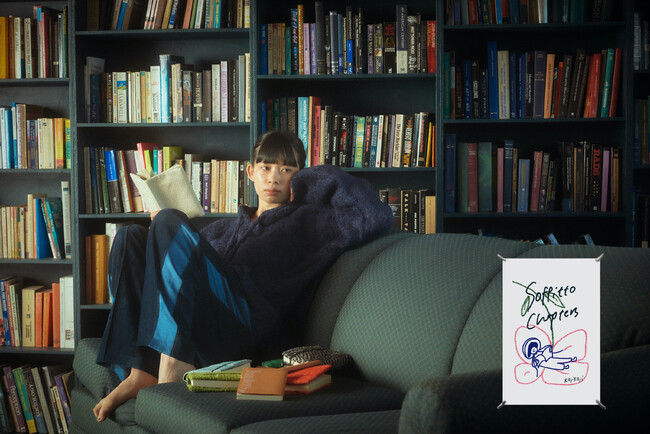 また今回のコラボレーションに際して、変態紳士クラブ、空音、Lucky Tapes、大橋トリオなど数多くの作品への客演参加やBASIのライブバンドの一員としてもコーラス/ギターを担当し、次世代のシンガーソングライターとして注目を集めるkojikojiが、Chapters書店のサービスからインスピレーションを受けた楽曲「金柑」も新規で書き下ろし。見る人の読書欲をくすぐる美しい歌詞とMVに仕上がりました。kojikojiデザインによるリラックスして読書を楽しめるフーディとベロアパンツも、2023年11月3日よりSoffitto店頭・オンラインにて限定発売します。