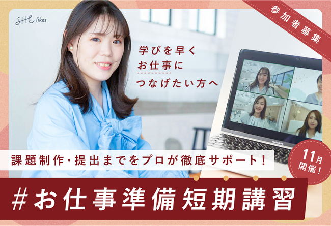 累計7万人以上が受講し、学ぶから働くまでをサポートする女性向けキャリアスクール「SHElikes(シーライクス)」を運営するSHE株式会社(所在地:東京都港区、代表取締役CEO:福田恵里、以下SHE)は、SHElikesでお仕事を挑戦するのに必要な課題の制作・提出を徹底サポートする「#お仕事準備短期講習」を、11月7日(火)からSHElikes受講生を対象に順次開催します。