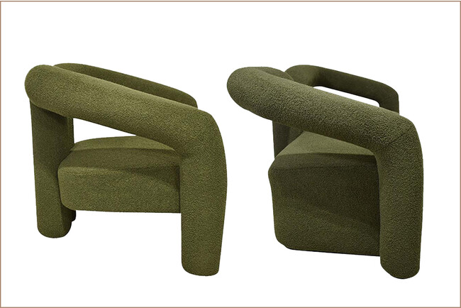 ソファの構造はいたってシンプルですが、アームから背もたれ、脚のラインが一体化しています。この不思議なフォルムがボア生地と相まって、シュールな世界観へと導きます。