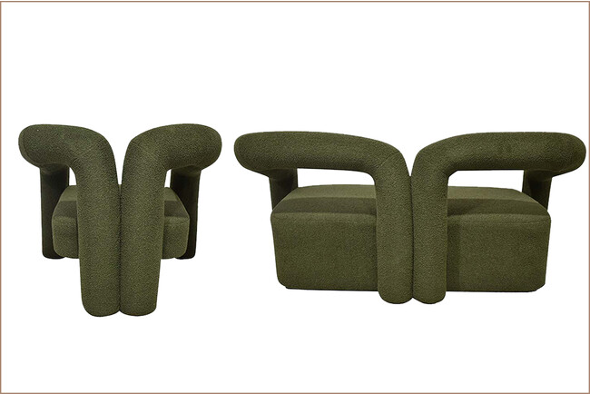 サイドやバックから見るととてもソファとは思えない形をしていて、その非現実さがこのソファの最大の魅力でしょう。深みのあるグリーンが全体のデザインの奇抜さを抑えているので、お部屋に馴染みやすいのも特長です。2人掛けと1人掛けの2サイズ展開で、2人掛けは幅145cmと、1畳分に収まるサイズ感です。1人掛けは幅7cm、奥行73cmと正方形に近い形をしています。どちらも高さは70cmほどで高さが抑えられており、圧迫感を感じにくいでしょう。