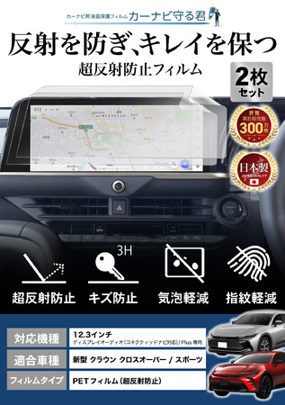 【10月25日-10月31日 特価1,980円】 新型 クラウン スポーツ / クロスオーバーの12.3インチナビの反射・傷・指紋を防ぐ「カーナビ守る君 保護フィルム 超反射防止タイプ」納車前の準備に