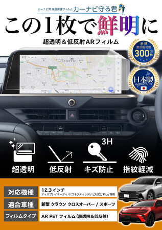【10月25日-10月31日 特価1,780円】 新型 クラウン スポーツ / クロスオーバーの12.3インチナビを傷や指紋から守る「カーナビ守る君 保護フィルム 超透明&低反射タイプ」納車前の準備に