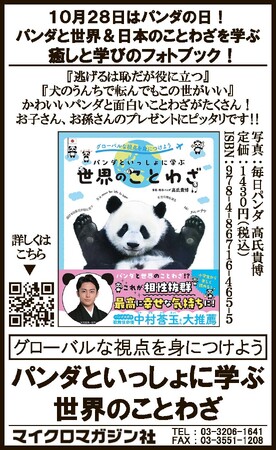 10月28日はパンダの日!かわいいパンダ写真で、ことわざを楽しもう!歌舞伎俳優、中村莟玉さんも推薦!『グローバルな視点を身につけよう パンダといっしょに学ぶ世界のことわざ』を朝日新聞に掲載いたしました