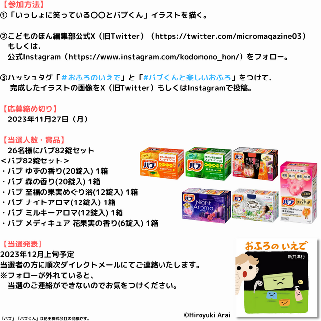 絵本『おふろの いえで』と花王バブがコラボ!#バブくんと楽しいおふろ フォロー&イラスト投稿キャンペーン開催!