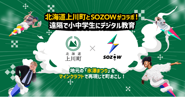 一方、北海道上川町は、町民の豊かな暮らしの実現のためにデジタル人材の育成を政策の一つとして掲げ、これまでにも幼児から小中高生、社会人やシニアに向けて、行政と民間が協力して様々な学びを届けてきました。この度、SOZOWの掲げる学びのコンセプトに共感いただき、SOZOWがこれまで培ってきた距離を超えて子どもたちに学びを届けるノウハウや技術を活用し、町の子どもたちに向けてデジタル教育のプロジェクトを共同提供することが決定しました。同時に、地域の伝統行事である「層雲峡温泉氷瀑まつり」を子どもたちがデジタルで再現することによって、地元の魅力を広く発信することも目指しています。